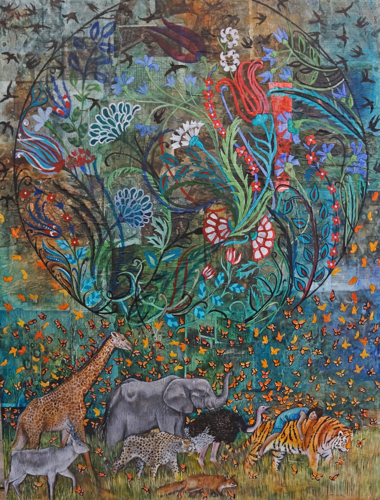 For original and prints: https://sabrinajill.com/product/respite-acrylic-on-collage-36×48/