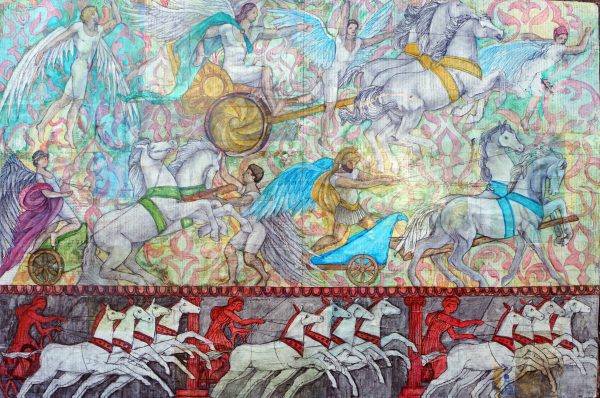 Chariots, 18″x24″, acrylic on collage