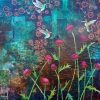 Hummingbirds with Thistles, acrylic on collage, 36″x48″