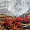 Misty Valley, acrylic on collage, 24″x28″