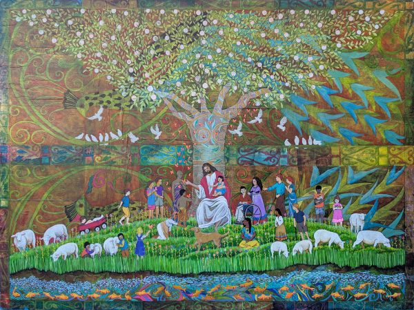When I began this piece, I wanted it to feel like childhood—bright, curious, and full of life. I pictured Christ as the center of that joy, surrounded by children from every background and circumstance, each one welcomed and loved.