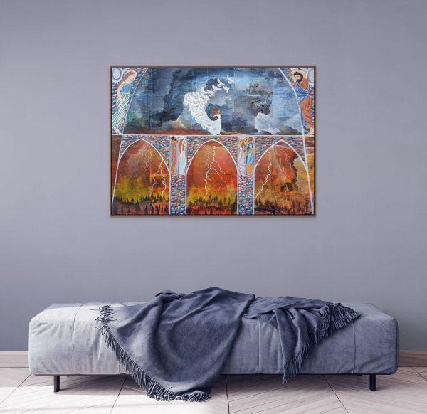 The Gospel Bridge, acrylic on collage, 48″x36″